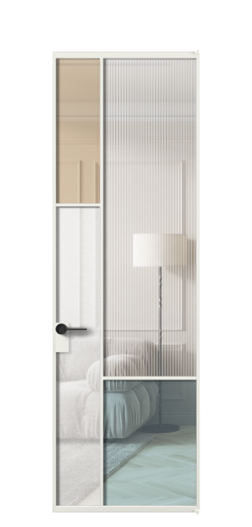 Лаконичный разделительный профиль внутренней раскладки полотна обеспечивает эстетический внешний вид конструкции и идеальную стыковку вставок из стекла.